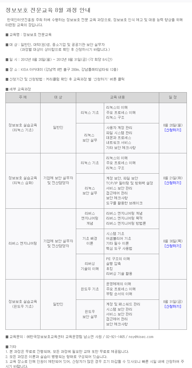 [NOTICE] Á¤º¸º¸È£ Àü¹®±³À° 8¿ù °úÁ¤ ¾È³» | ||||||