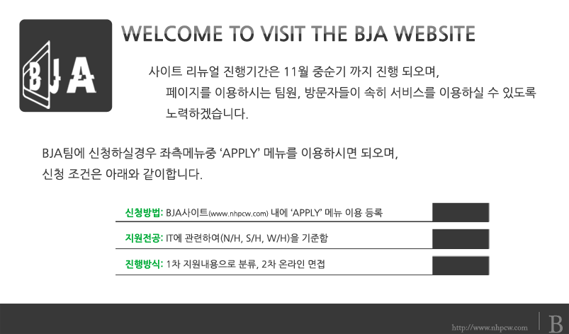 BJAÆÀÀº 1³â 2°³¿ù°£ Ȱµ¿À» ÇØ¿Ô´ø ÆÀÀ¸·Î ±ÔÄ¢ÀûÀ¸·Î ¸ð¿© ´ã´ç Á¶»ç¹ßÇ¥¿Í ÇÁ·ÎÁ§Æ®¸¦ ÁøÇàÇØ¿Ô½À´Ï´Ù.