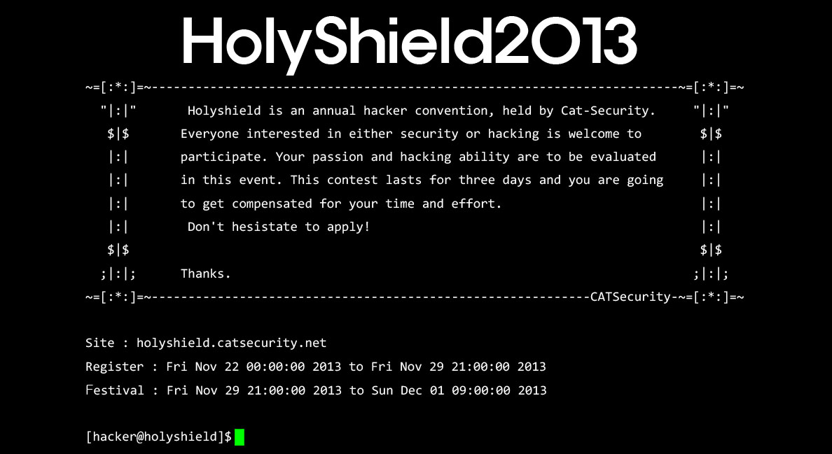 [CAT-Security] Hacking Festival 'Holyshield 2013' | ||||||