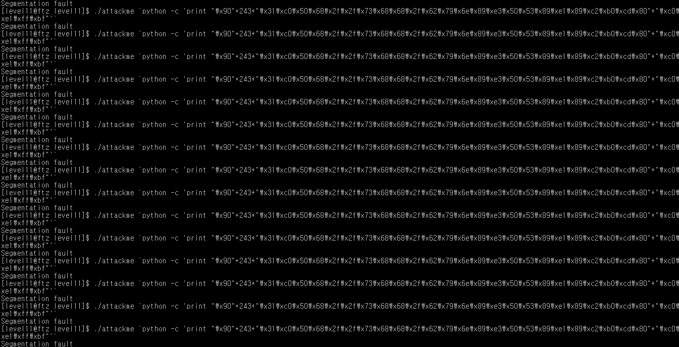 ½ÇÁ¦·Î ./attackme `python -c 'print "a"*263'`