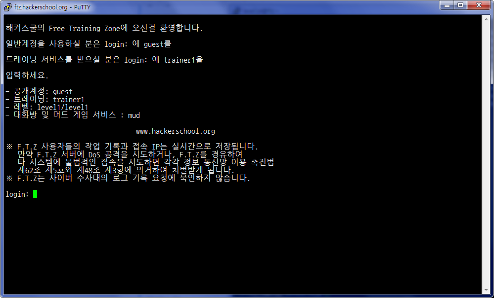 ÀÌ°Ô ftz.hackerschool.org, telnetÁÖ¼Ò¸¸ ¼³Á¤Çؼ µé¾î°¥ ¼ö ÀÖ´Ù¸é ÁÁ°ÚÁö¸¸